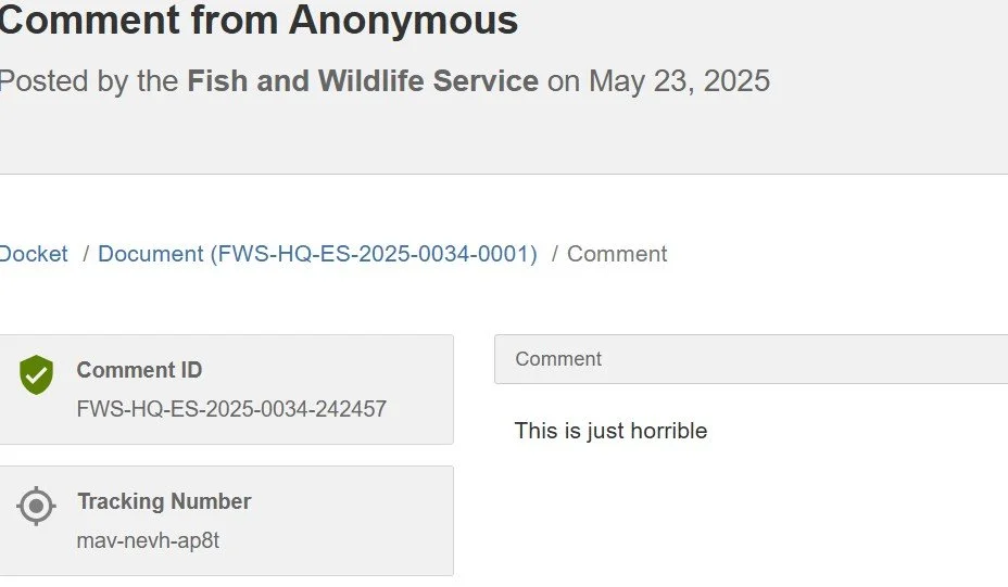 The public comment period for docket FWS-HQ-ES-2025-0034-0001 officially closed on May 19, 2025. As of March 1, 2026, the total number of comments submitted reached a whopping 357,699.