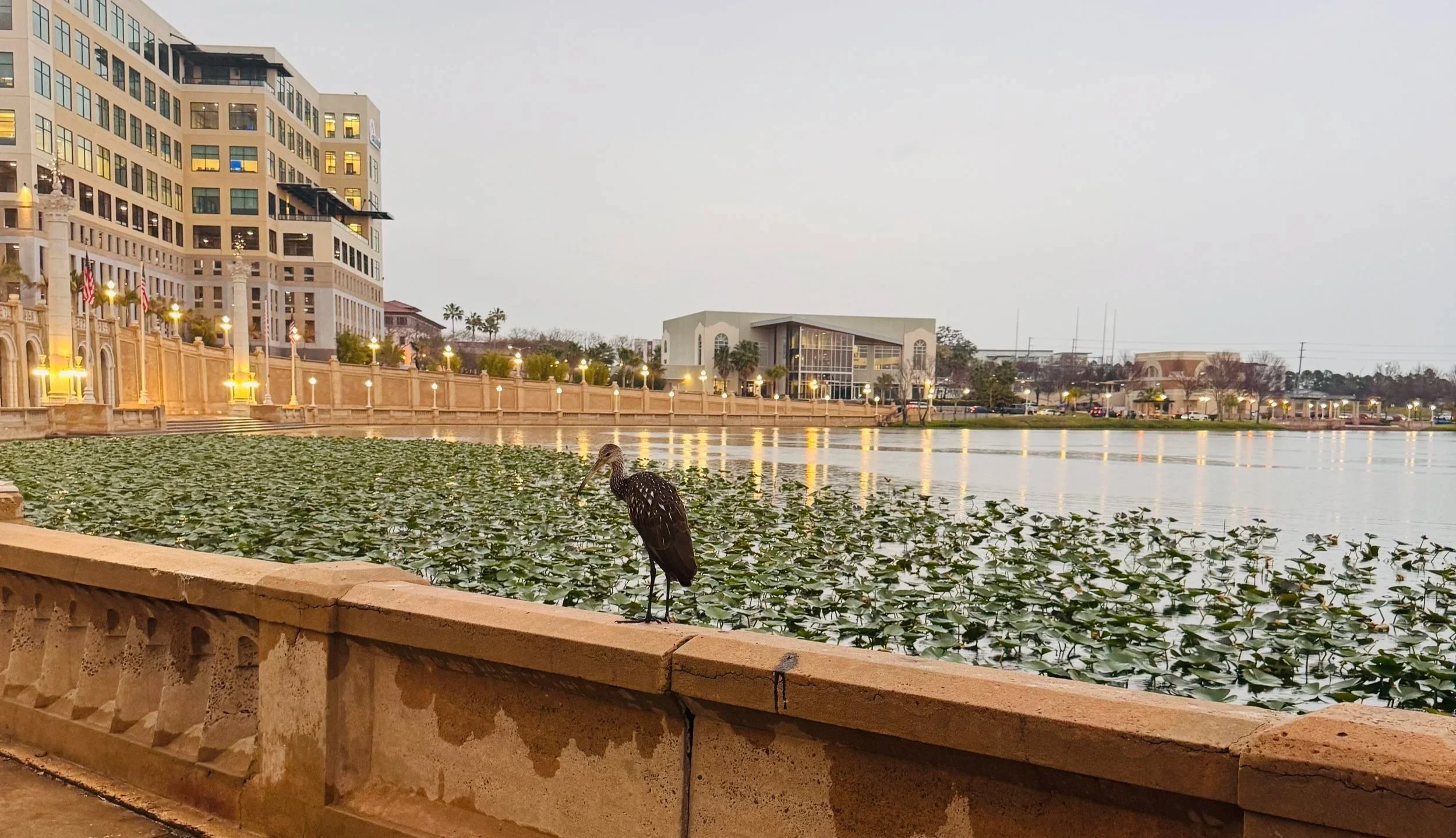 Fearless Limpkin standing at Lake Mirror, Lakeland, Florida